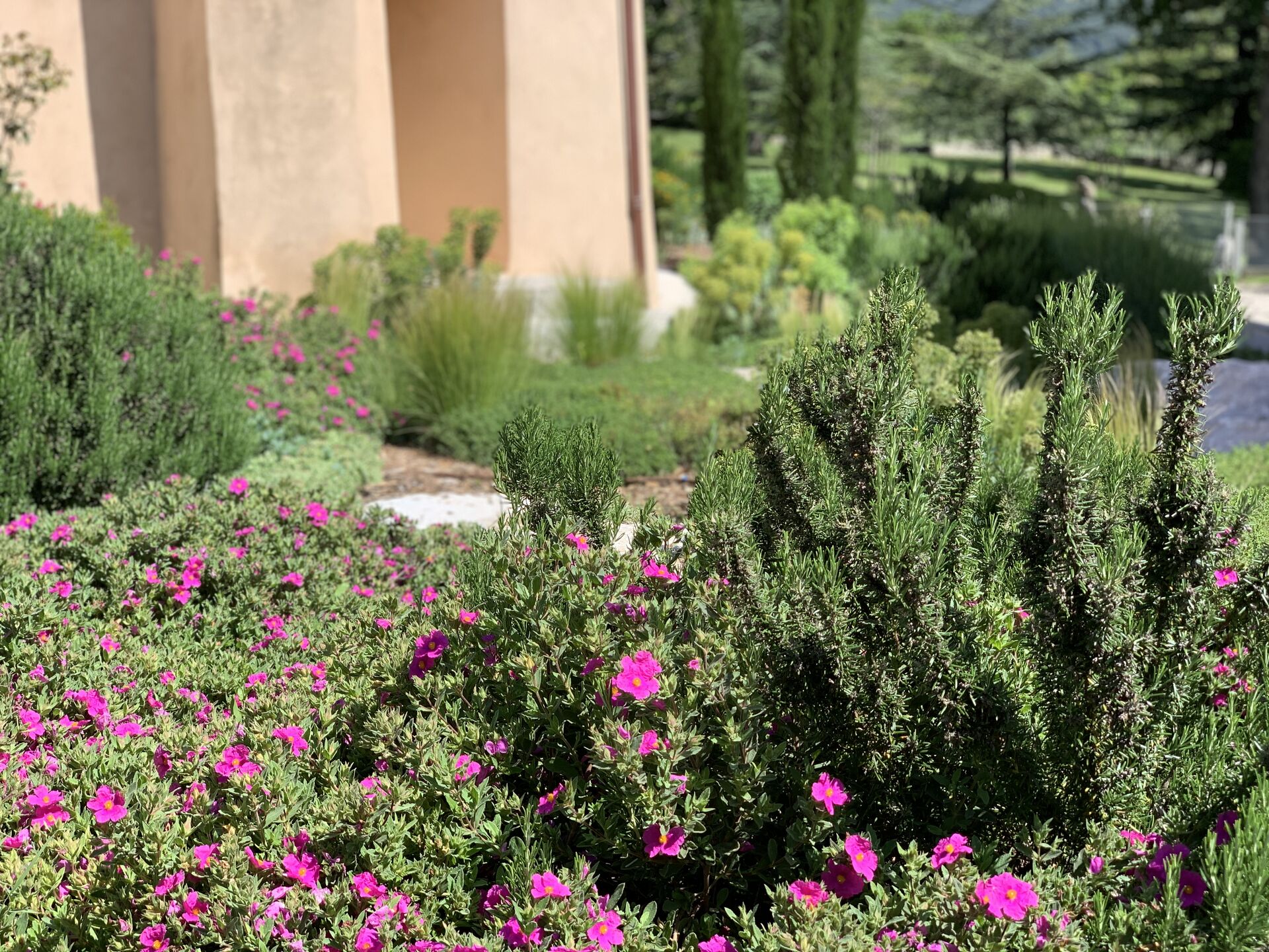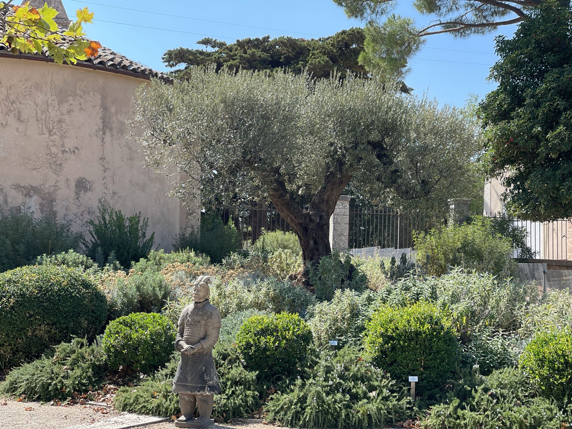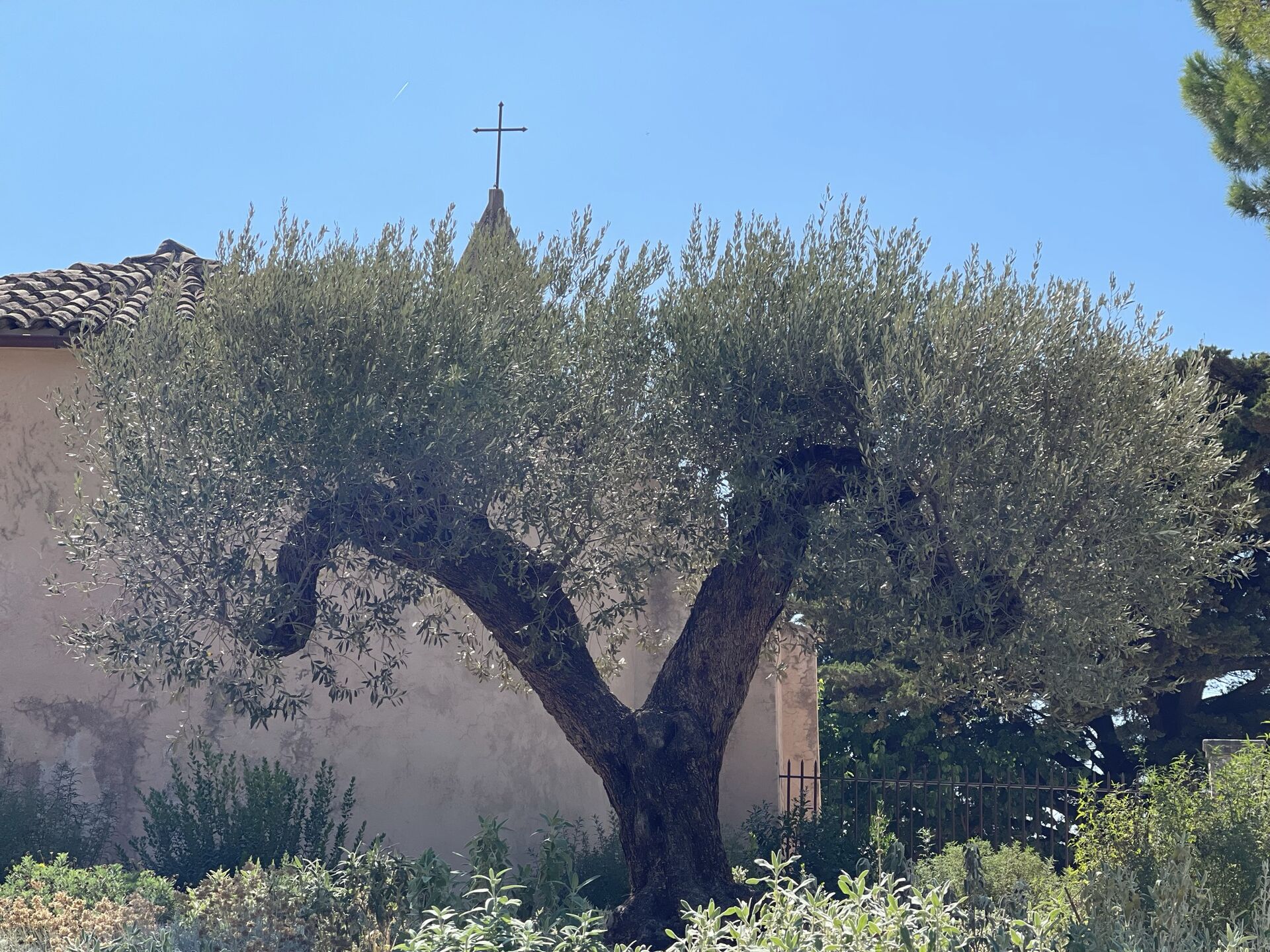 Cet olivier, témoin du temps et symbole de paix, a été intégré au cœur d’un jardin provençal existant, entouré de massifs de lavandes, romarins et euphorbes.